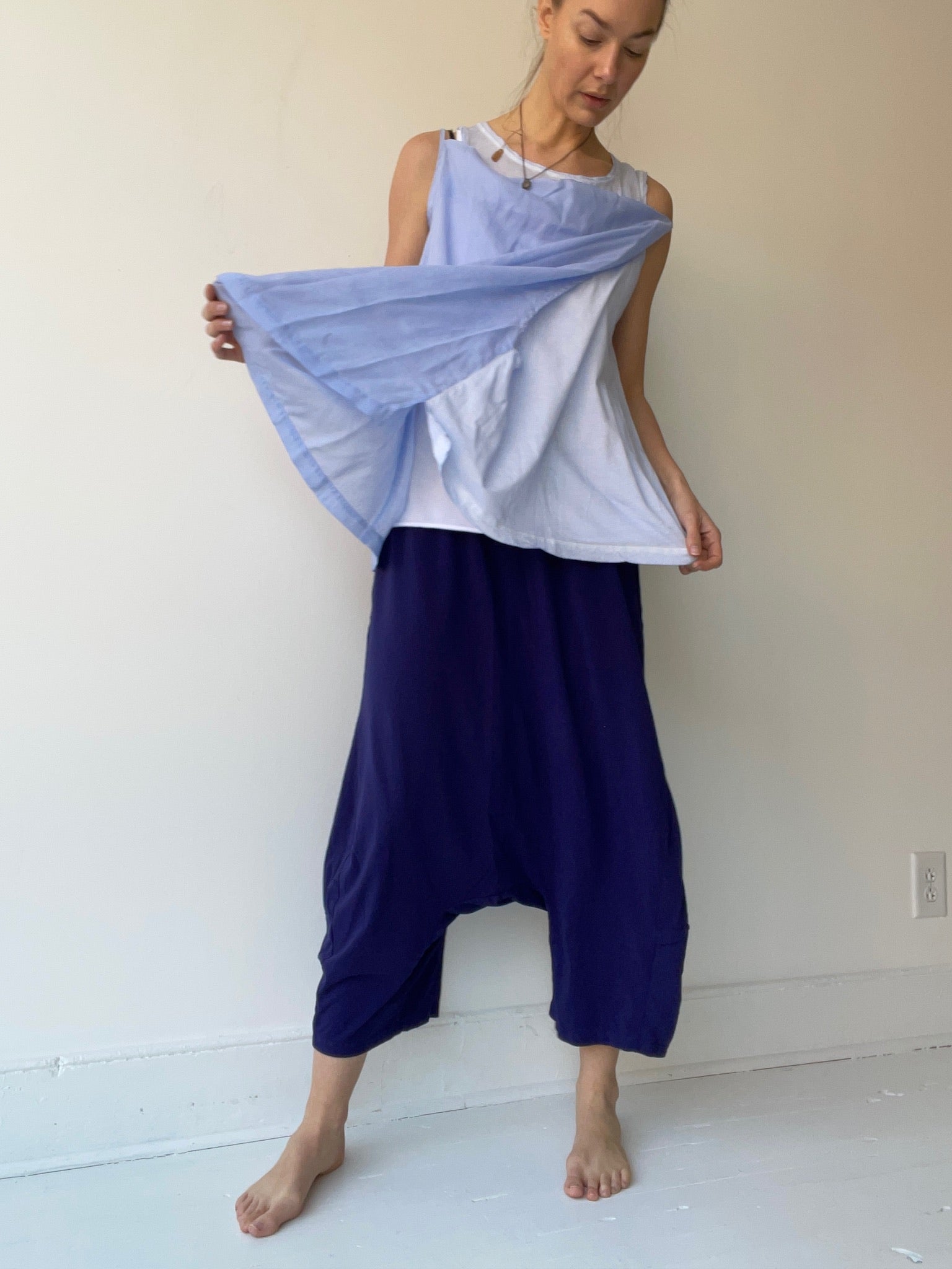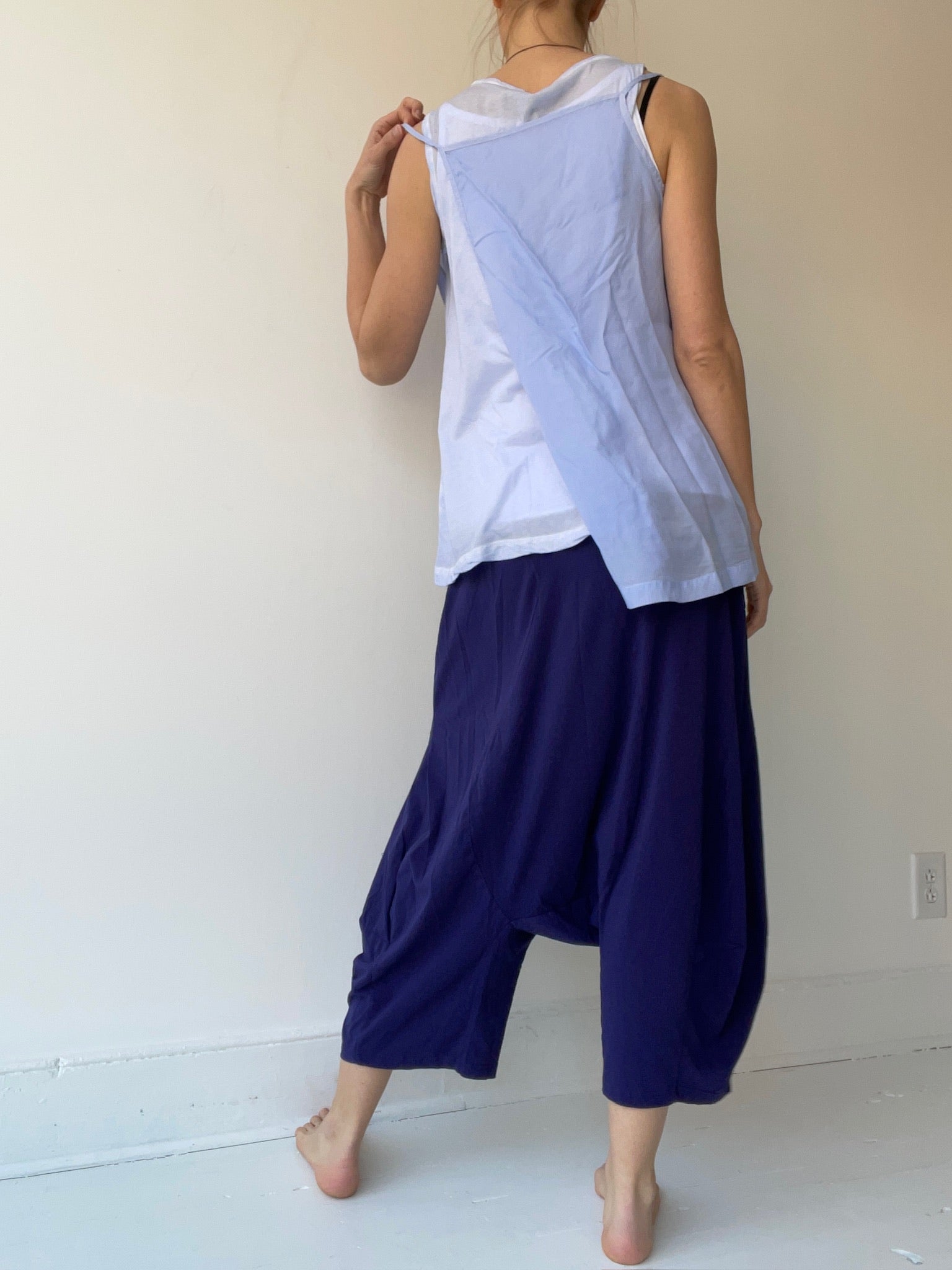 by rundholz mainline, sleeveless strap top with overlapping double layered front