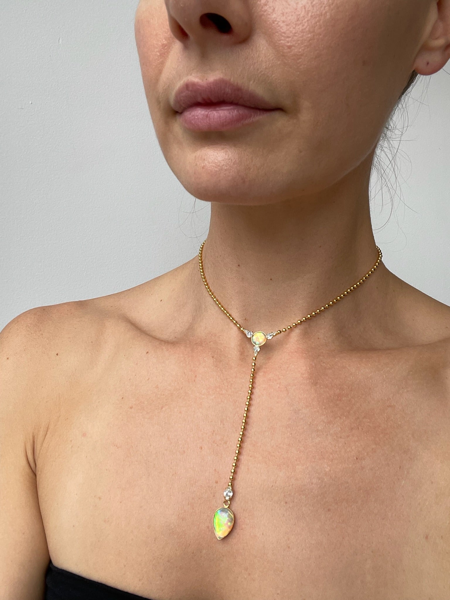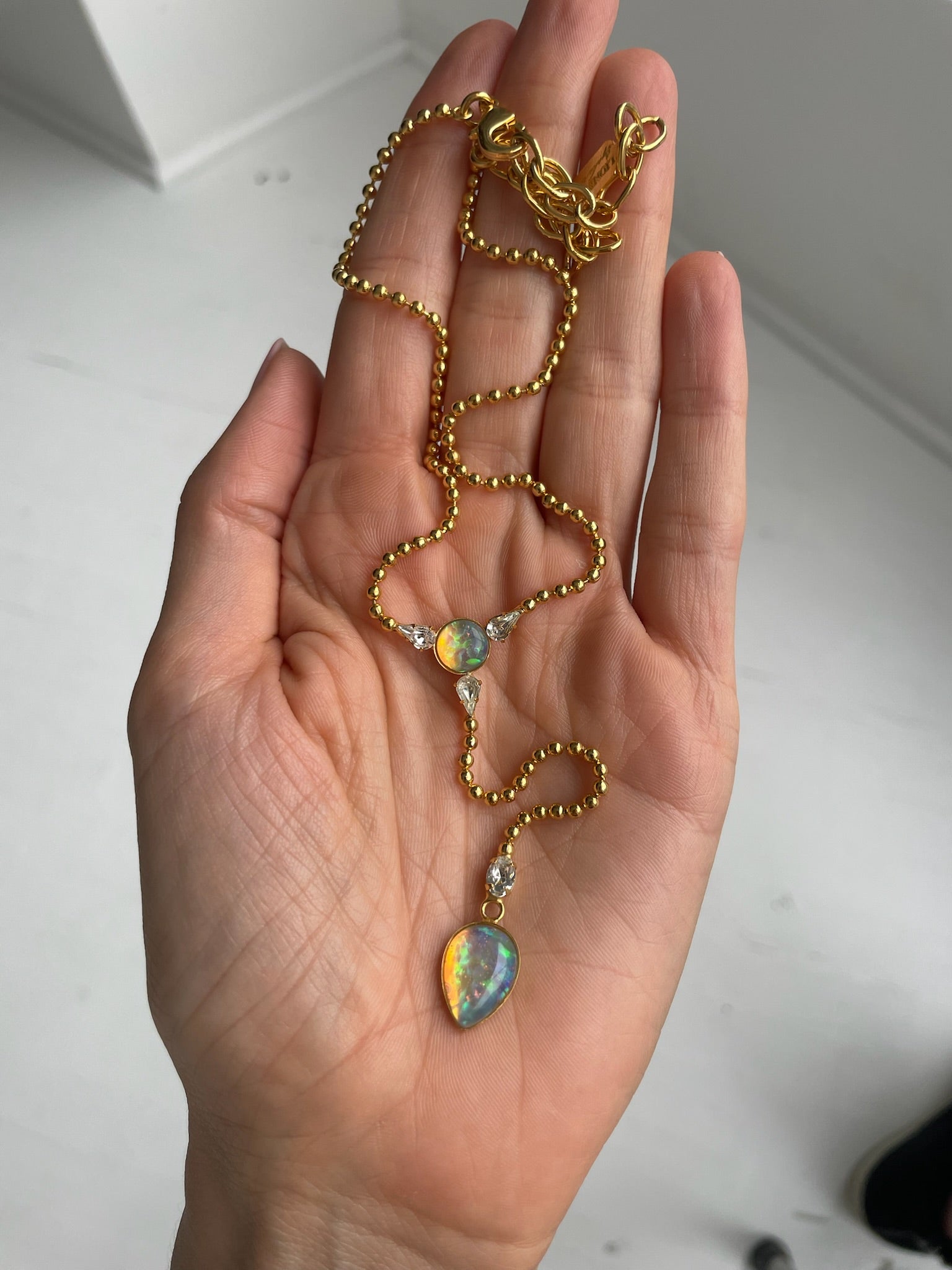 •lab crystal opal, swarovski crystal, gold plated chain