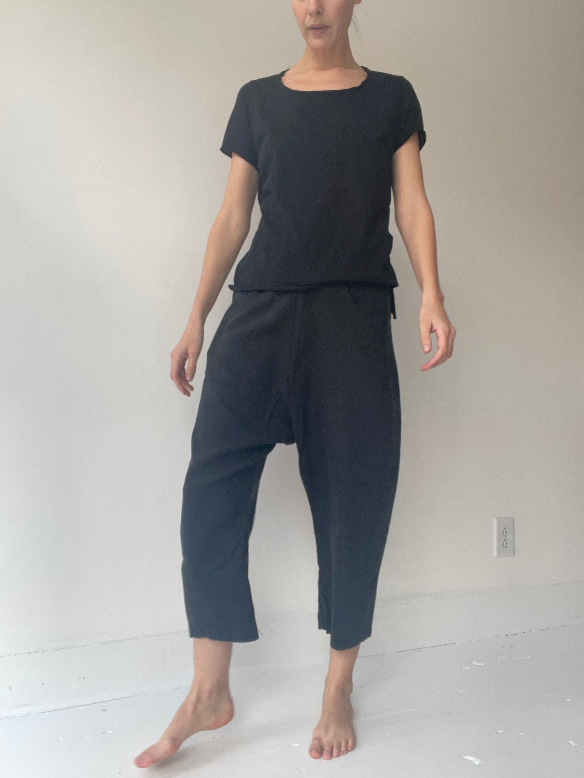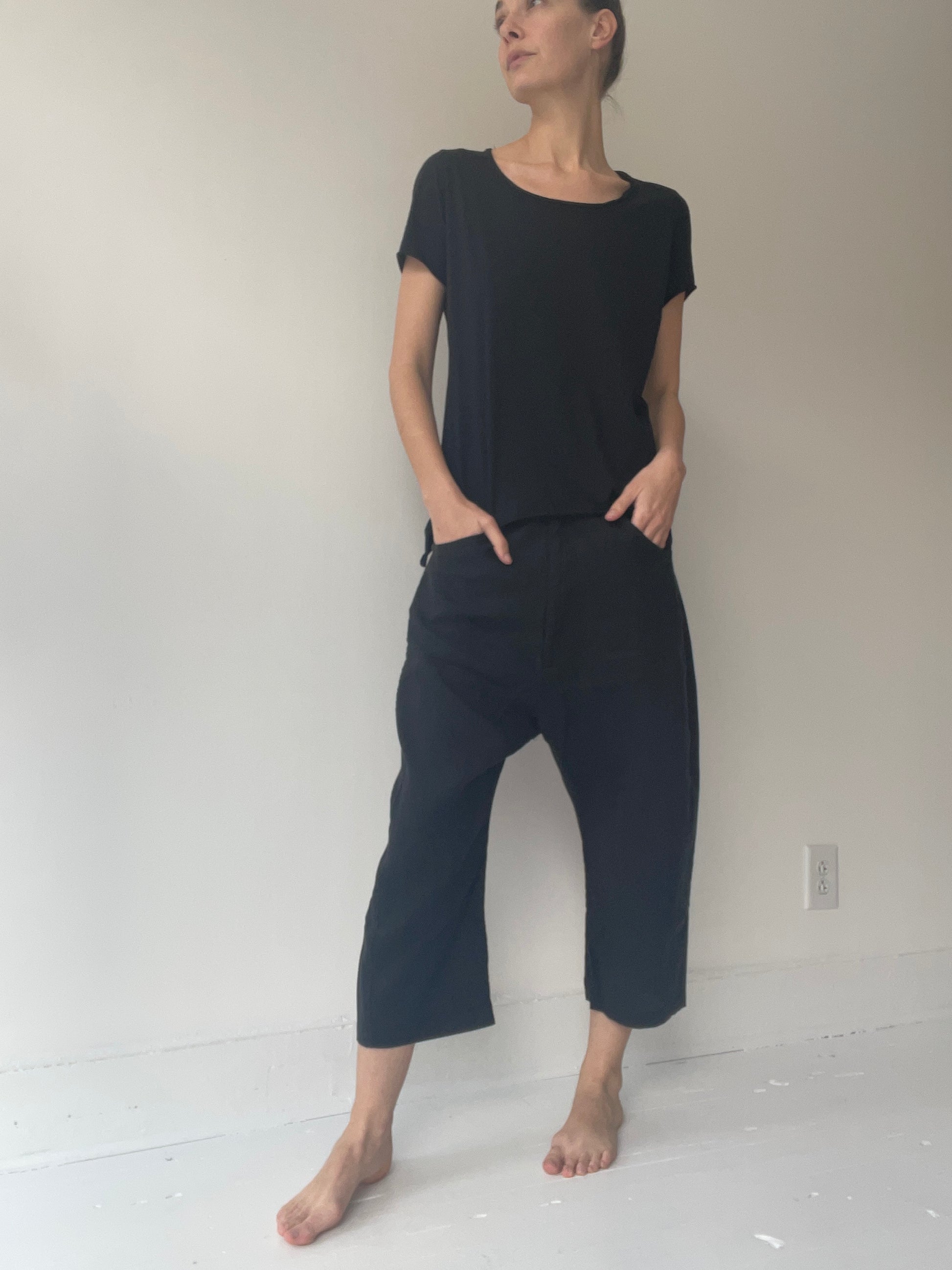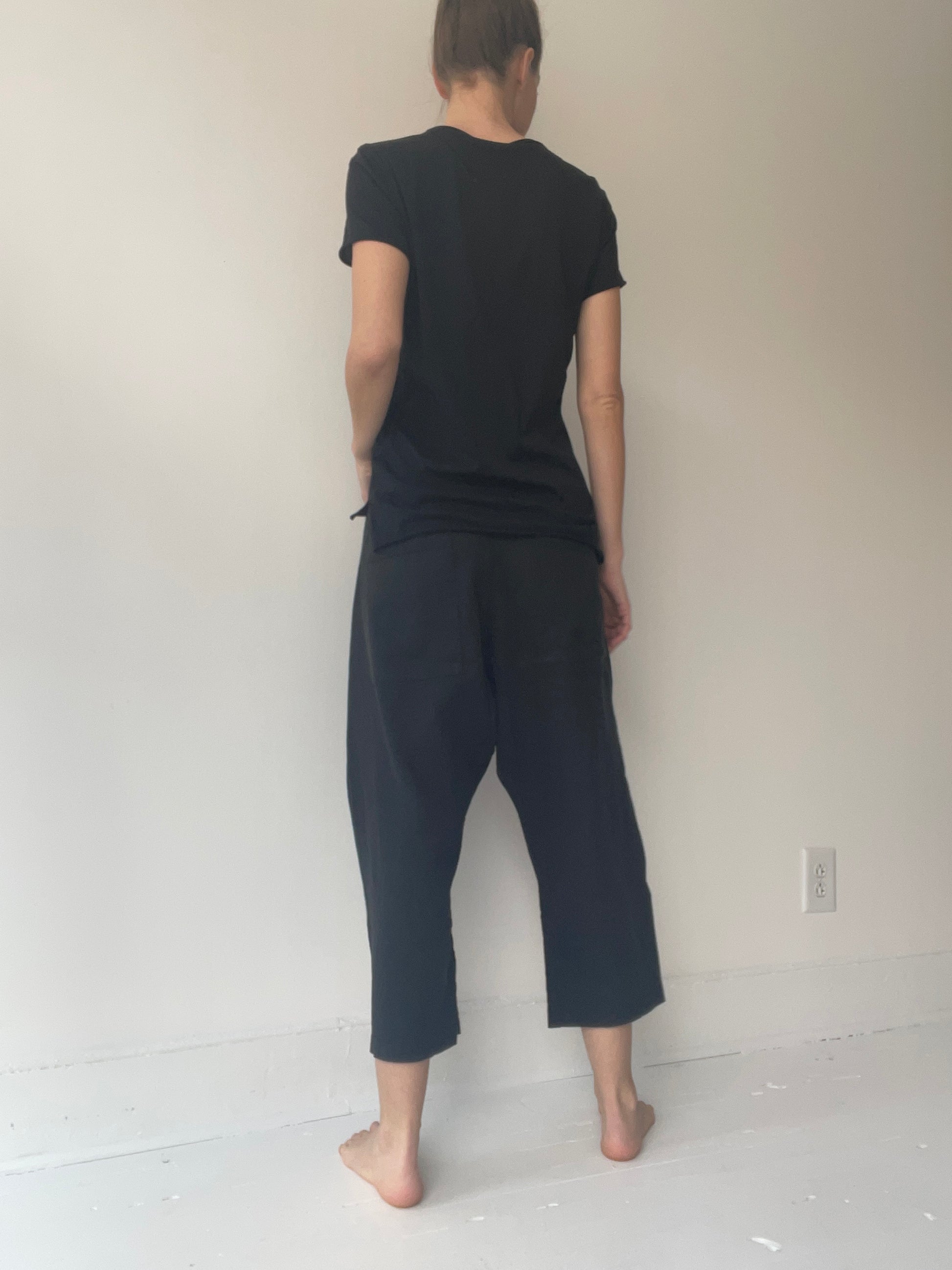 by pal offner, straight cut t-shirt with slit on the side and backside being slightly longer than the front