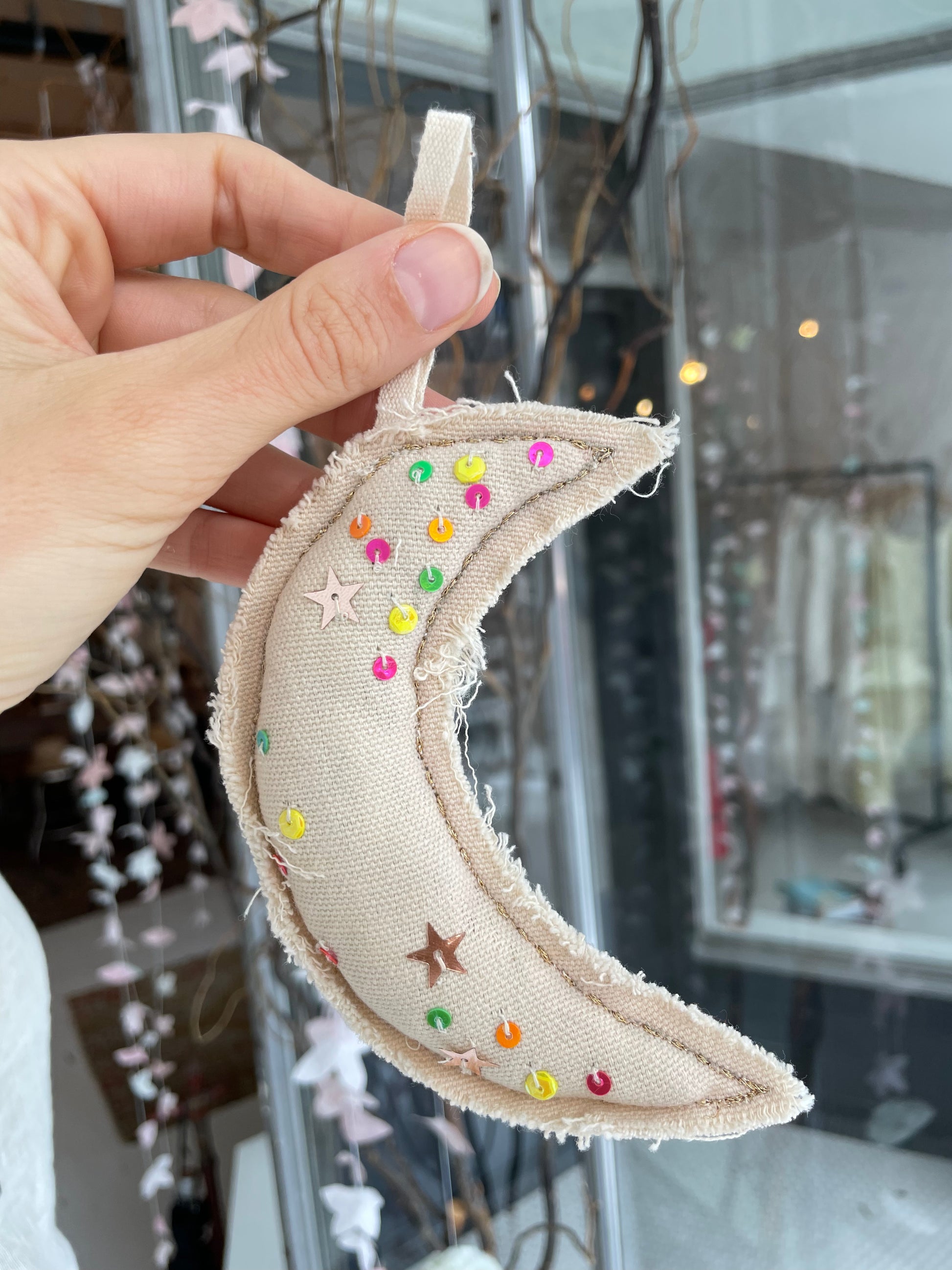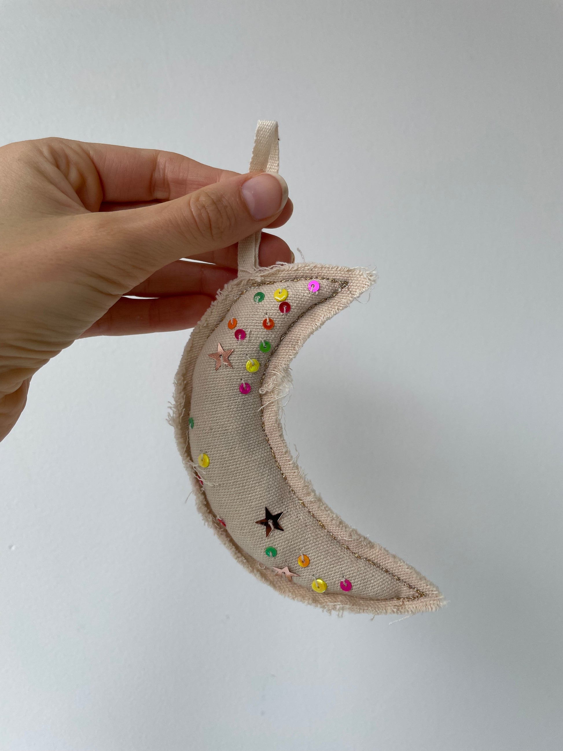 skippy cotton neon confetti moon ornament