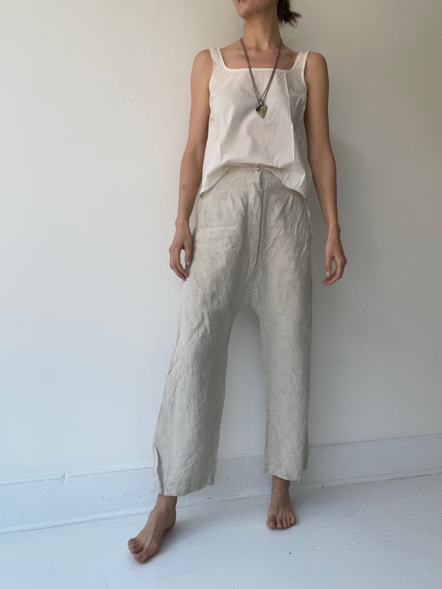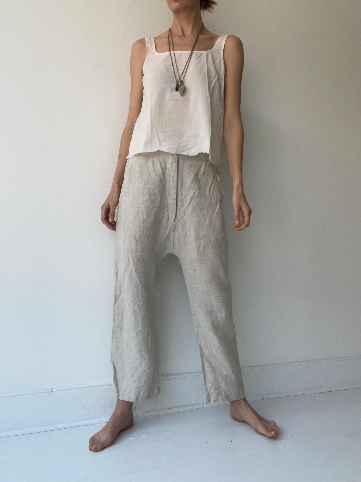 by sula, light cotton camisole with hand stitching and slightly square neckline